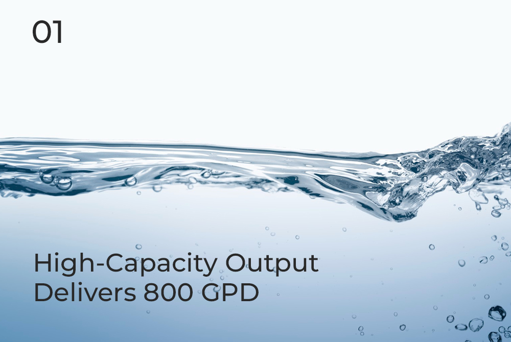 With an impressive 800 GPD output, the Alpha 800 provides a steady flow of pure water, making it ideal for families, offices.